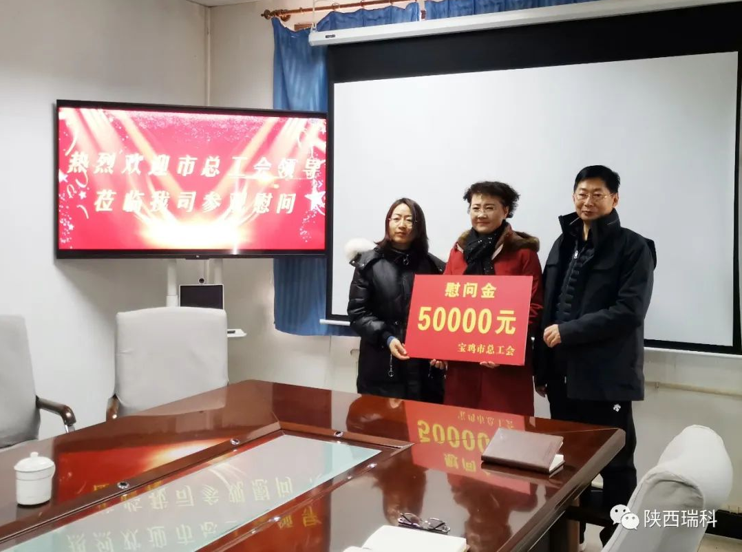 2021年1月11日,宝鸡市人大常委会副主任、市总工会主席曹海芹及高新区党工委一行深入我司,为我司带来“迎新春,送温暖”慰问金5万元。