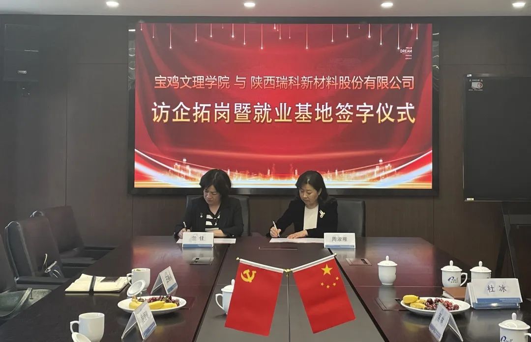2022年5月17日,陕西瑞科新材料股份有限公司与宝鸡文理学院举行 “共建大学生就业基地” 签约仪式。