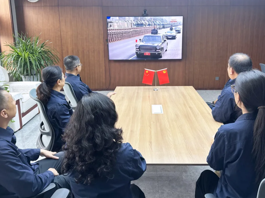 为让员工共同见证这一具有特殊意义的历史时刻,公司组织员工观看阅兵仪式。各车间和展厅全天播放纪念中国人民抗日战争暨世界反法西斯战争胜利80周年阅兵式直播和回放,确保每位同事都能参与到这一国家盛事中。