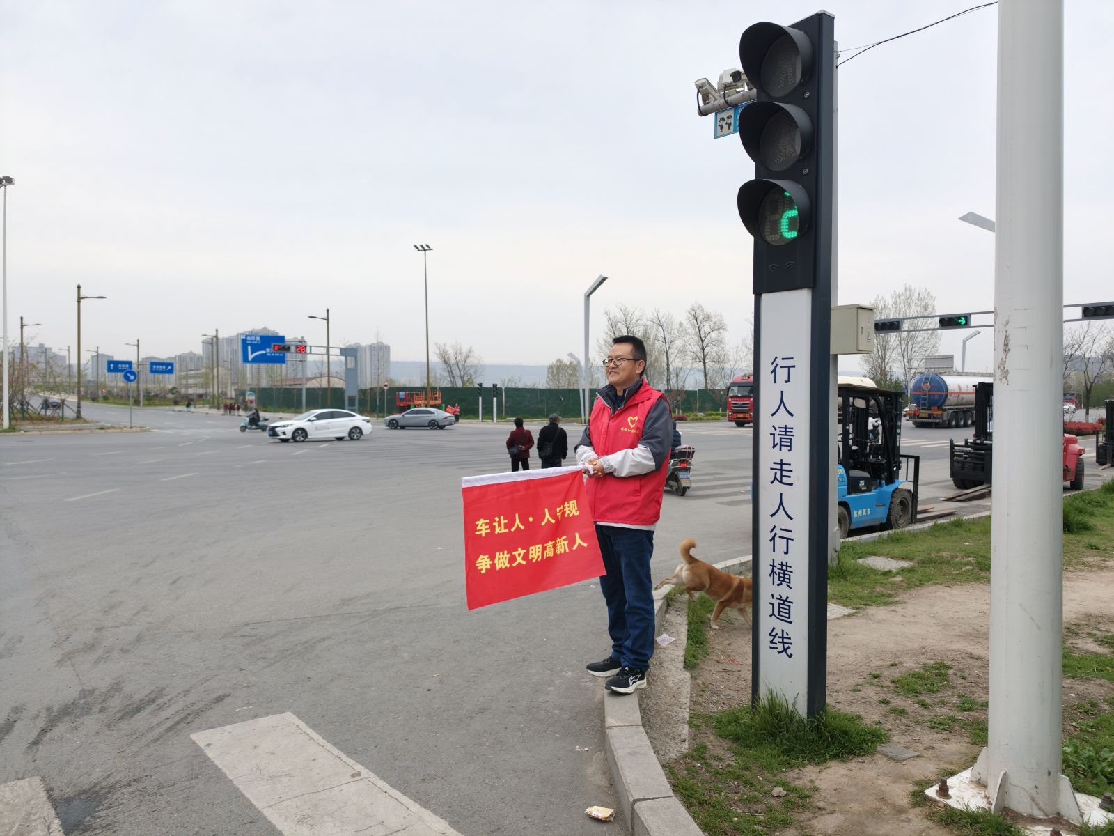 活动期间,志愿服务队队员们提前集结、明确分工,手持文明劝导旗,在路口各个值守点位开展工作。他们严格按照交通规则,耐心引导过往市民自觉遵守交通信号灯指示通行,对不文明交通行为,进行温和劝导,告知其潜在的安全隐患。同时,针对困难群众,队员们主动上前提供帮助,用细致的服务维护了路口的交通秩序,保障了群众出行安全。